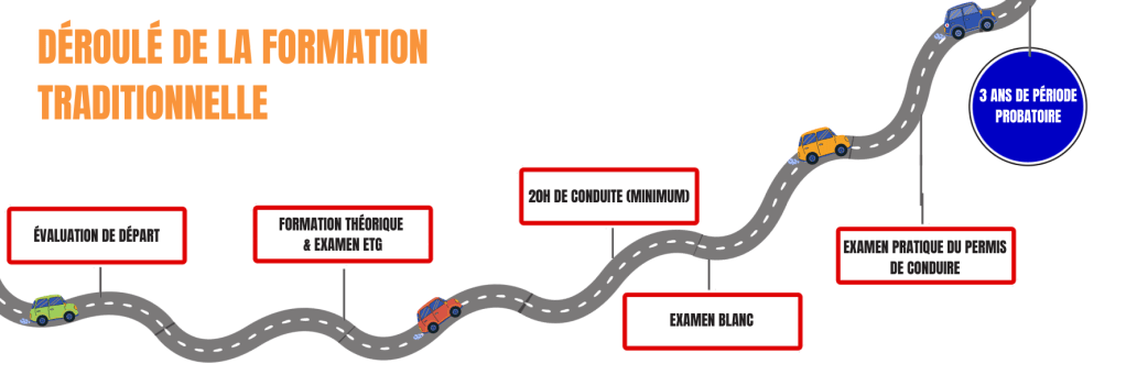 Plusieurs méthodes et outils d’apprentissage vont s’offrir à vous tout au long de la formation (théorique et pratique), afin de faire de vous un conducteur ou une conductrice responsable. Les étapes principales du parcours de cette formation sont les suivantes :